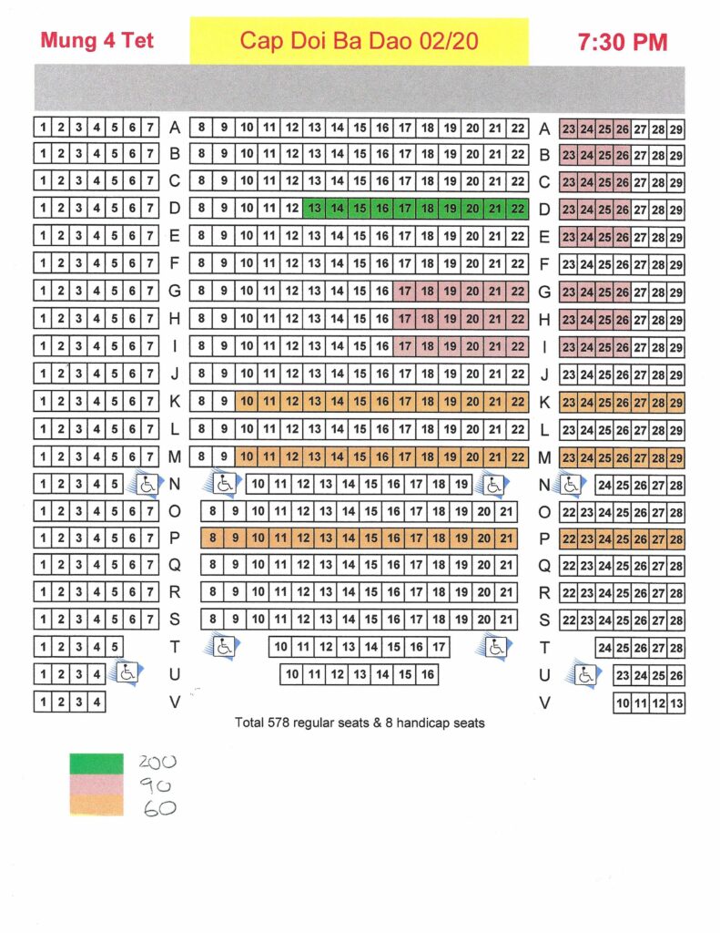 VIP Row D 13-22, PREM Row A 23-26, PREM Row B 23-26, PREM Row C 23-26, PREM Row D 23-26, PREM Row E 23-26, PREM Row G 19-22, PREM Row G 23-26, PREM Row H 17-22, PREM Row H 23-26, PREM Row I 17-22, PREM Row I 23-26, REG Row M 10-22, REG Row M 23-29, REG Row P 8-21, REG Row P 22-28, REG Row Q 6-7, Reg Q 8-21, REG Row Q 22-25, REG Row K 10-22, REG Row K 23-29