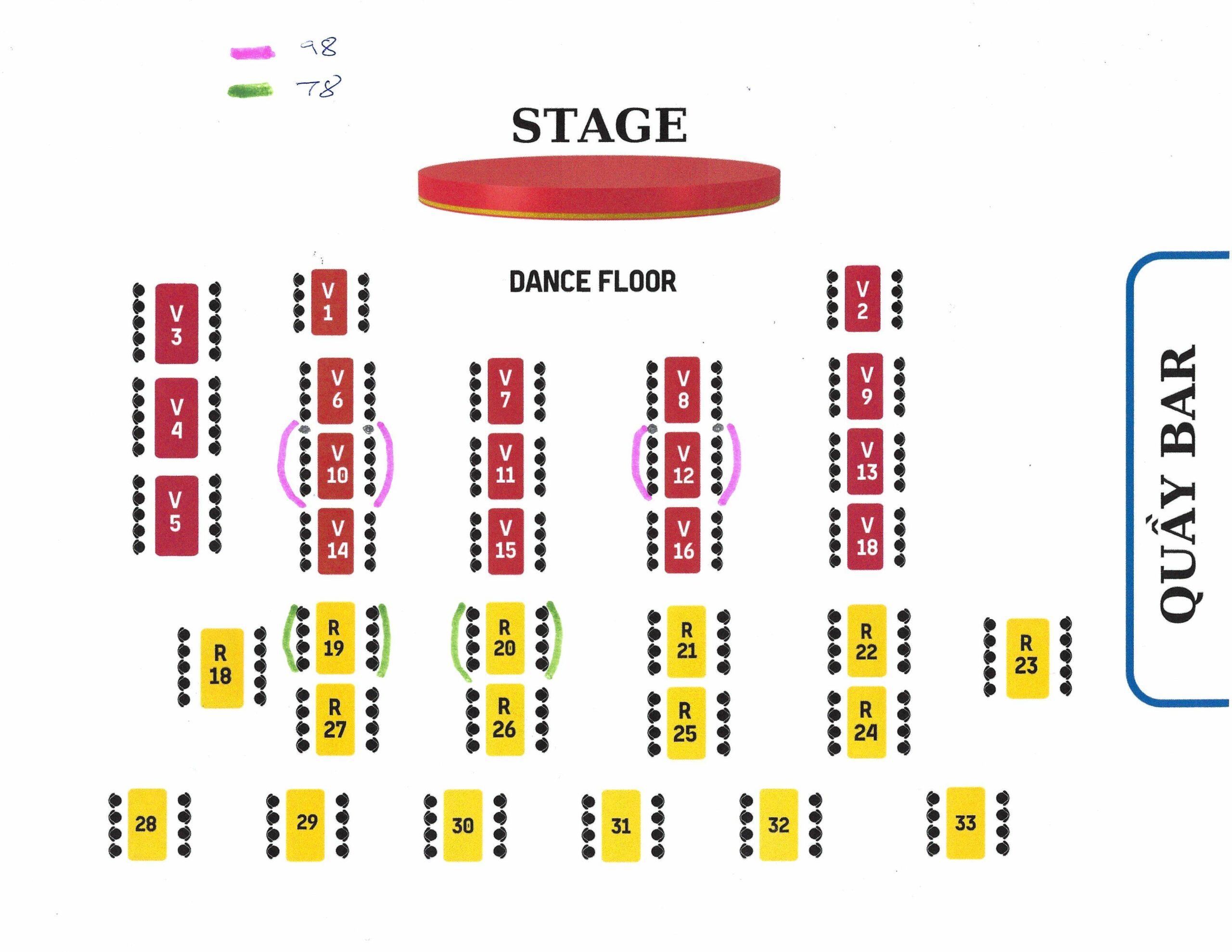 Seating | VIP Table 10 -10, Vip Table 12 – 10, Reg Table 19 -8, Reg Table 20 -8 |