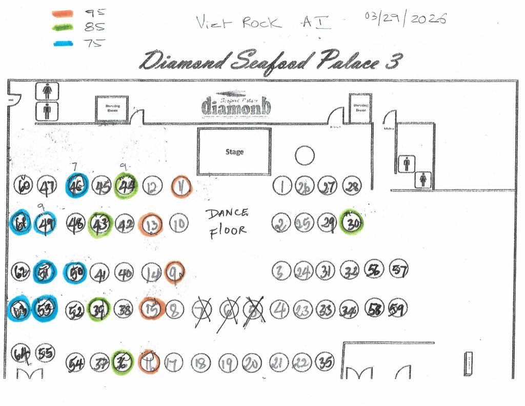 | Seating | VIP Table 11-10, VIP Table 13-10, VIP Table 9-10, VIP Table 15-10, VIP Table 16-10, Diamond Table 43-10, Diamond Table 40-10, Diamond Table 44-10, Diamond Table 36-10, Diamond Table 39-10, REG Table 46-10, REG Table 49-10, REG Table 50-10, REG Table 53-10, REG Table 61-10, REG Table 51-10, REG Table 63-10 |